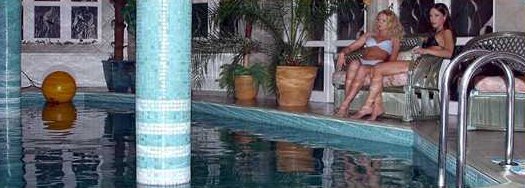 A 8 x 5 x 1,5 méteres süllyesztett víztükrű, mozaikkal burkolt medence, alakja és az épület fa tetőszerkezetét tartó két - formabontóan, de építészeti meggondolásból praktikusan elhelyezett - oszlop miatt nem a legalkalmasabb az úszásra. Minden felmerülő problémára van megoldás, a beépített ellenáramoltató sodrásában az úszótréningek alatt már kellemesen el lehet fáradni. A medencetérbe nincs masszázsmedence, ezért a tulajdonosok úgy döntöttek, hogy kihasználják az ellenáramoltató biztosította masszázs lehetőséget. Felszereltségét kiegészítették egy masszázstömlővel, melynek használatával a napi úszás után kellemesen megmaszírozhatják a test bármely pontját, izomzatát.