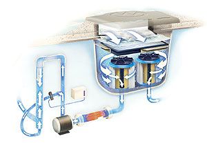 3.Lépcső: Eco PurTM természetes ásvány tartalmú finomszűrők. Ez a lépcső elpusztítja a legtöbb, vízben előforduló baktériumot, algát és gombát egy olyan ásványi folyamatot alkalmazva, amit ivóvíz kezelésére is hatékonynak és biztonságosnak fogadtak el. Ez a folyamat a kémiai fetrőtlenítések után maradó fölös klórt vagy brómot is eltávolítja.