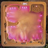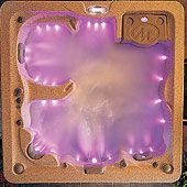 Relaxáljon a legújabb LED technikával biztosított,teljes SPA-t kitöltő fényfürdőben. A kezelőpanelon beállíthatja a szűrőfedél, a fejpárnák, a nyakmasszázs ülés, az "Aqua Pressure" ülés, a vízesés és más részek megvilágítását hét különböző színben.
