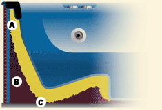 A. Habszigetelés és polisztirol lap B. Meleg levegő C. Nagy szilárdságú fenéklemez |