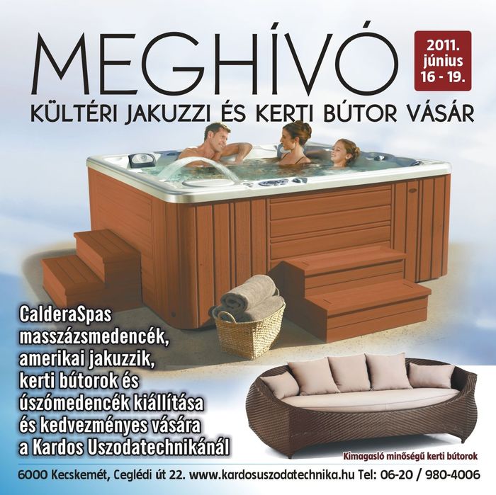 Hagyomány őrzően, idén is megrendezésre kerül nyár végi kerti bútor és prémium jakuzzi vásárunk, ahol kedvezményesen vásárolhatják meg masszázsmedencéinket és kerti bútorainkat az érdeklődők.