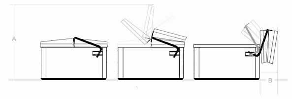 Ennek, a rendelhető extra felszereltségnek köszönhetően, egy személy is könnyen tudja mozgatni a spa hőszigetelt tetejét. Továbbá, megvédi a tetőt a földön tárolásból eredő esetleges sérülésektől, és a belsejére rárakodó szennyezőktől. A tető tartásához 406mm plusz helyre van szükség oldalirányban. |